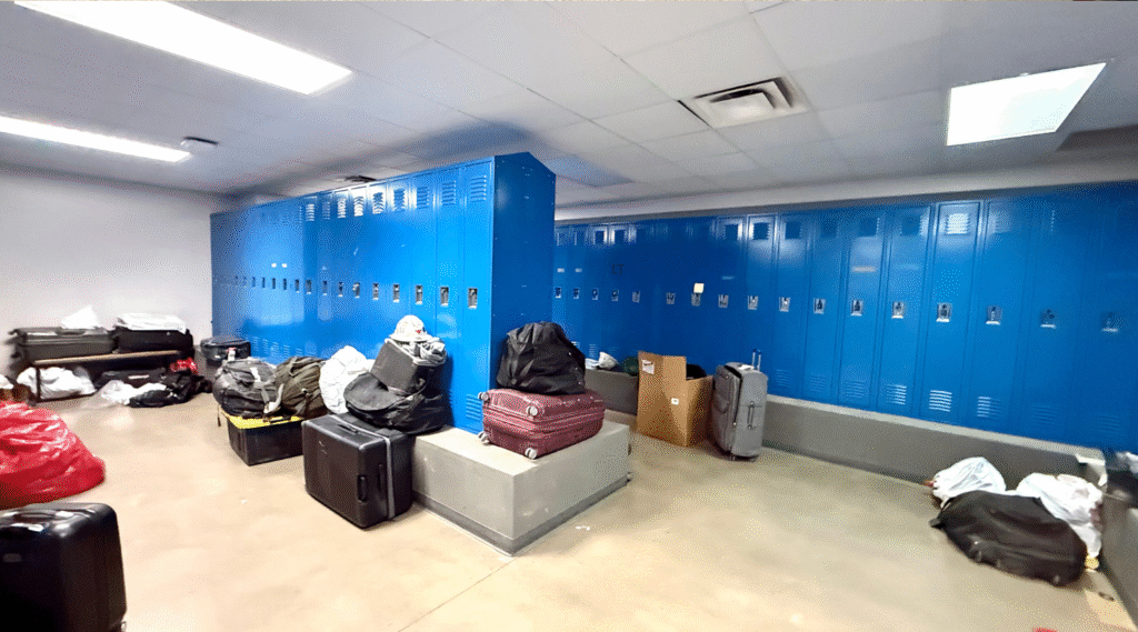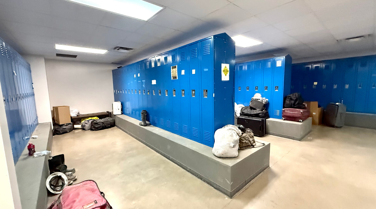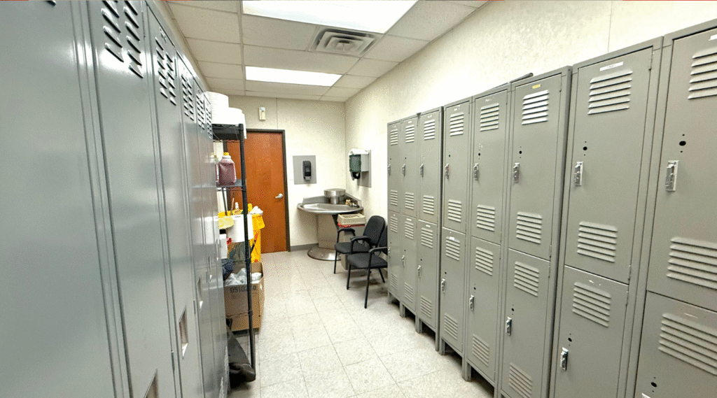 Multiple office areas, kitchens, and locker rooms supporting round-the-clock crews