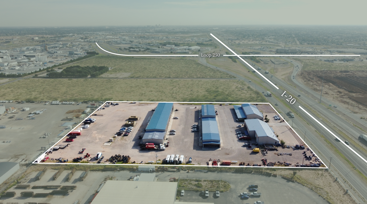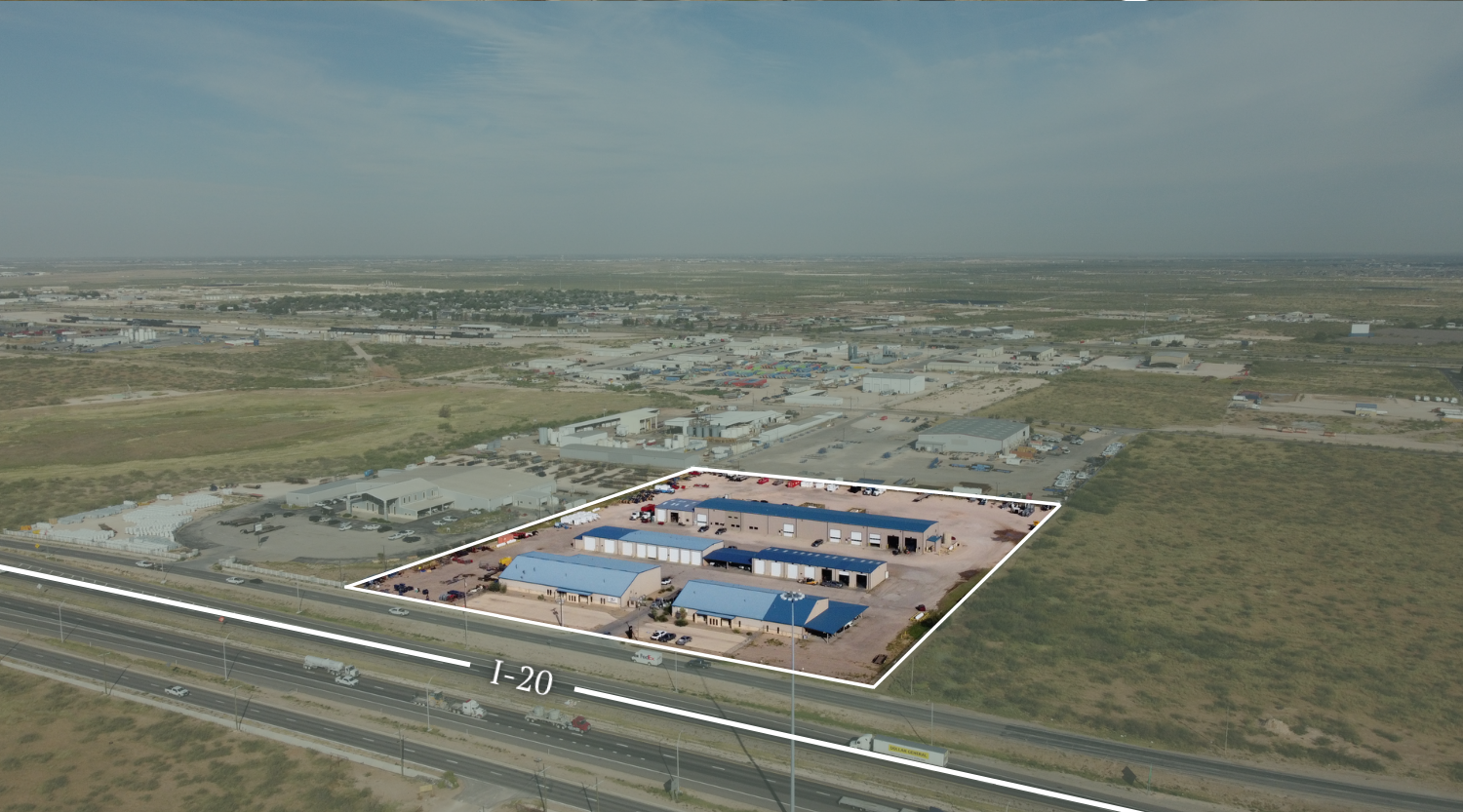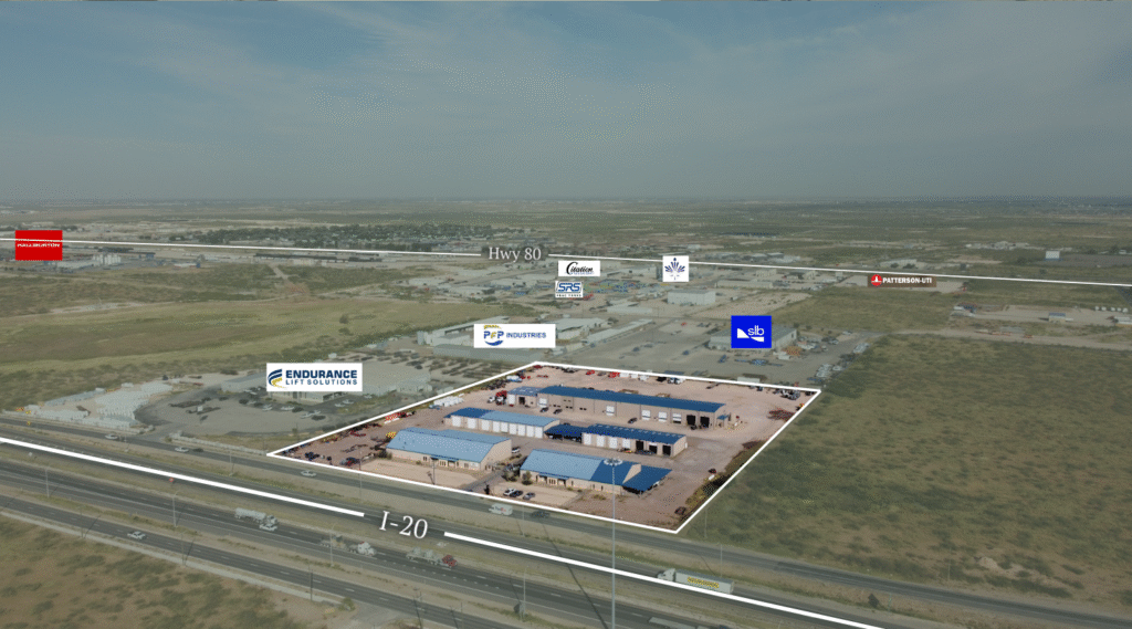 A premier 64,640 SF industrial complex on 10 acres with direct Interstate 20 frontage, offering exceptional visibility and logistical access. Purpose-built for heavy-duty operations, the property combines extensive yard space, high-clearance shop areas, and modern office build-outs—ideal for oilfield service, fabrication, or regional distribution users seeking a prime Midland–Odessa base.